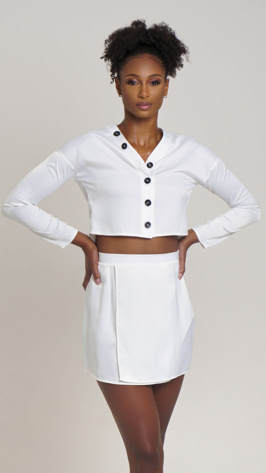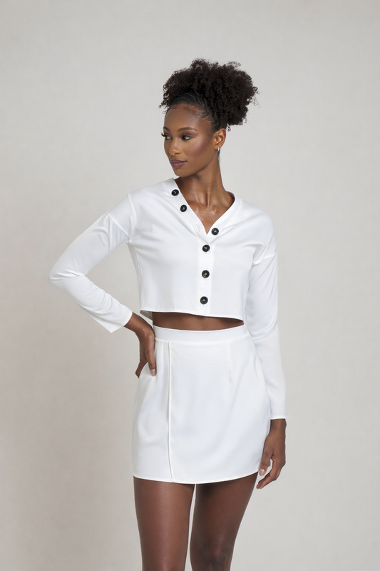 White Collared Satin Long Sleeve Shirt